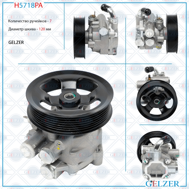 Новый насос ГУР производителя GELZER. Шкив 7PK диаметр 120 MM. Резьбовое соединение шланга высокого давления