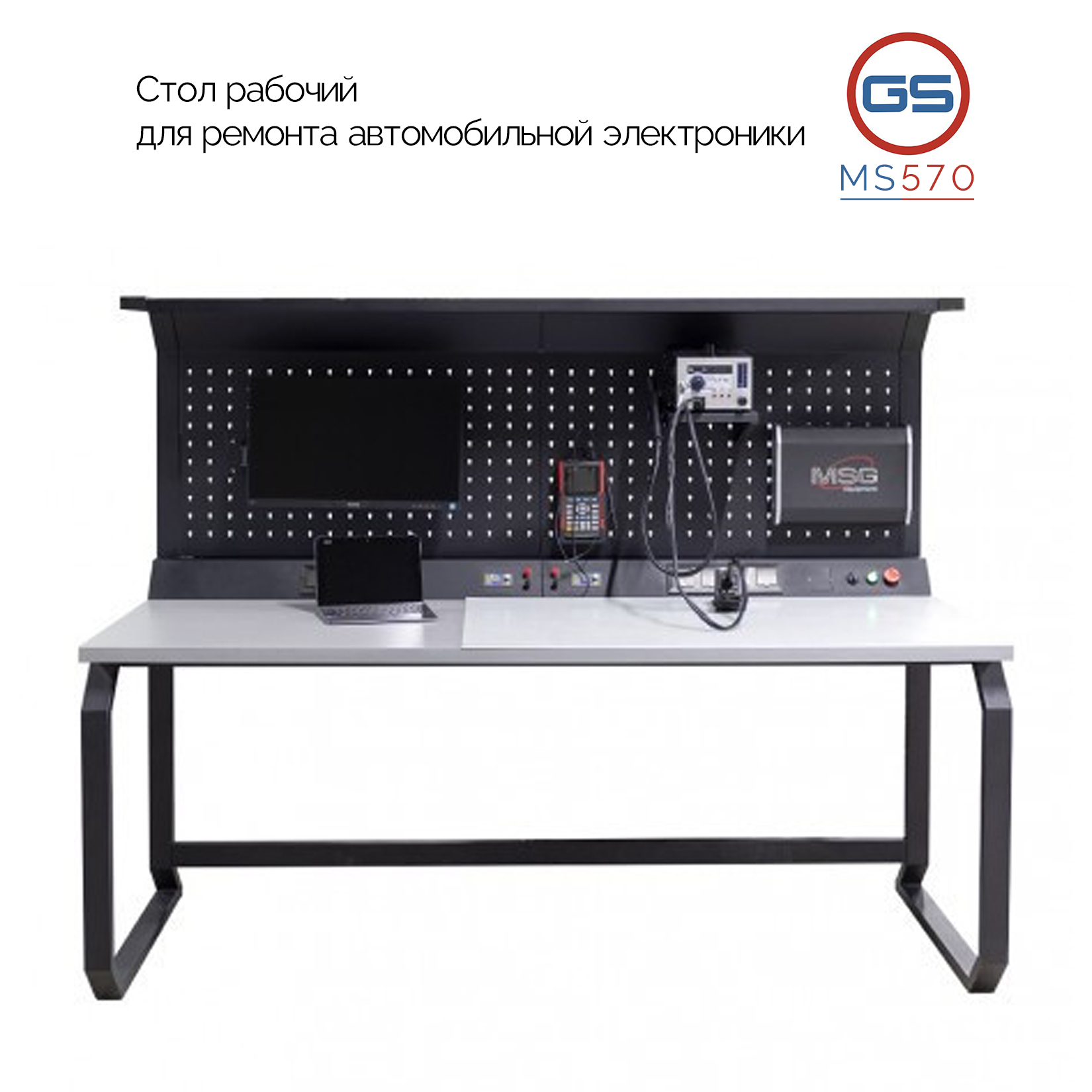 Рабочий стол MS570 представляет собой рабочее место для ремонта любой автомобильной электроники и многих подобных работ. Стол адаптирован для диагностики и ремонта рулевых реек с ЭУР при помощи контроллера MS561. Стол оборудован двумя лабораторными блоками питания, а также предусмотрено крепление под монитор с любой диагональю.