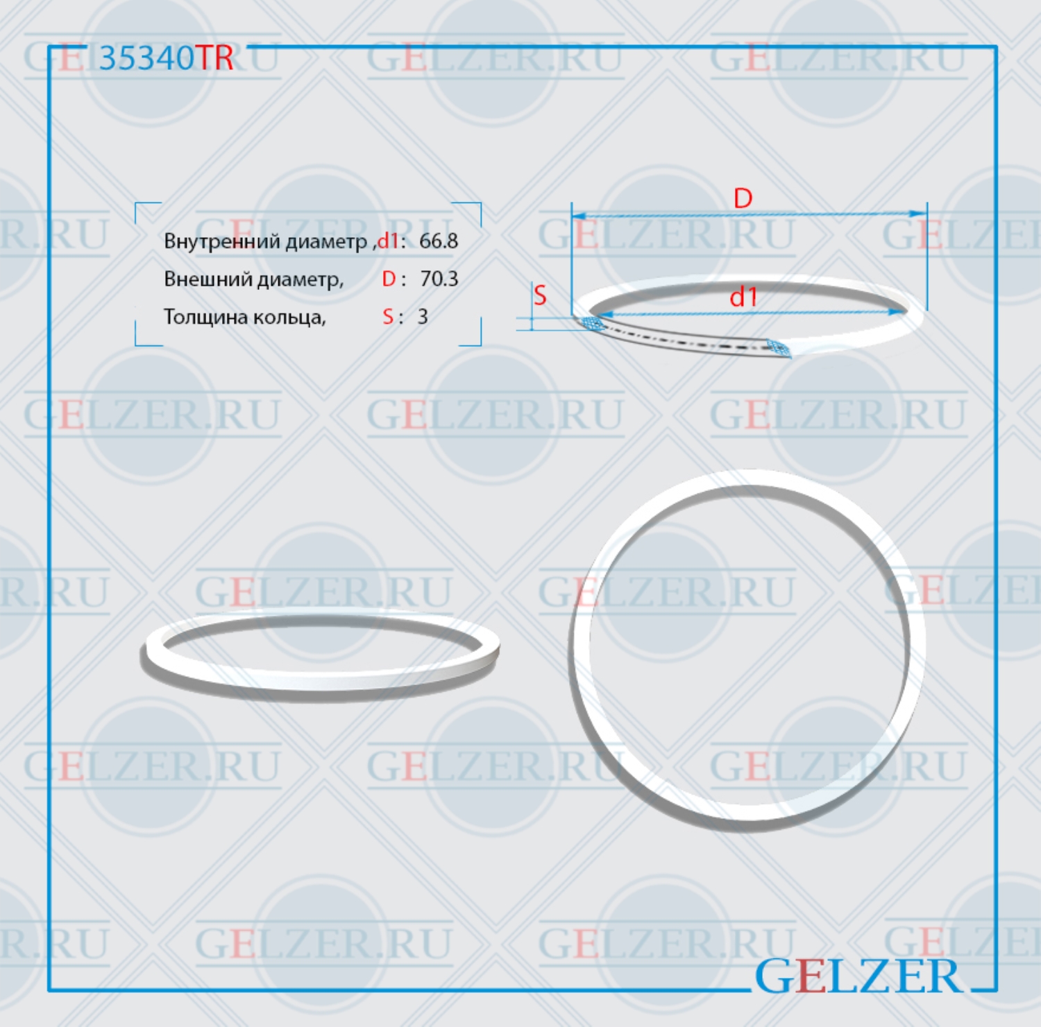 Тефлоновое кольцо 66.8*70.3*3