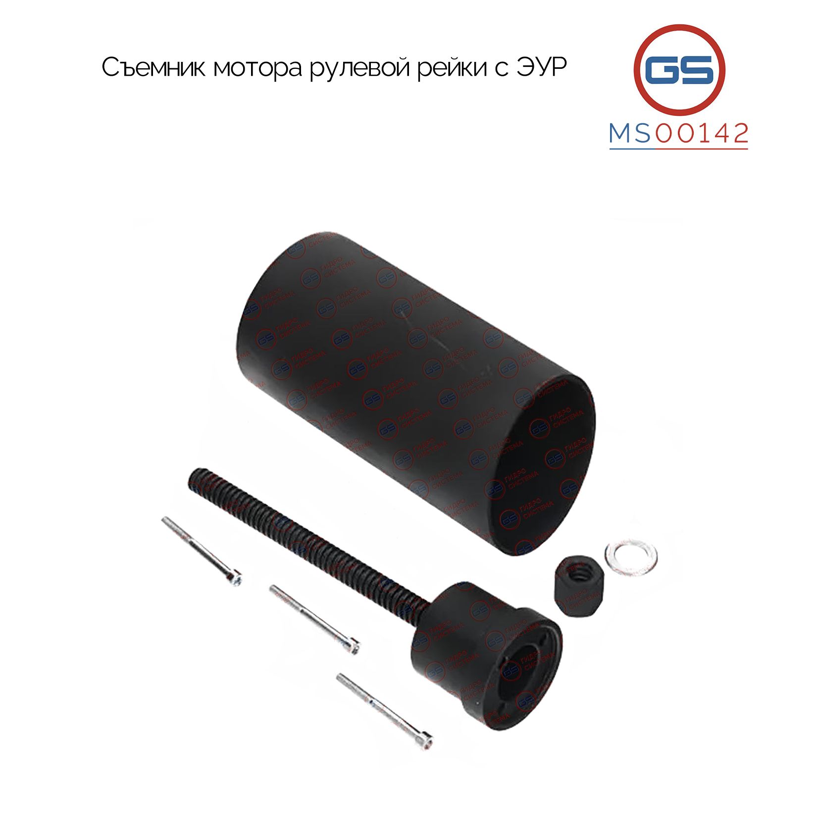 Особенности: Съемник MS00142 состоит из колокола, который служит упором, винта с гайкой которые необходимы для захвата электродвигателя и вытягивания его. Данная конструкция позволяет выпрессовать даже очень закисшие двигателя из корпуса рейки.